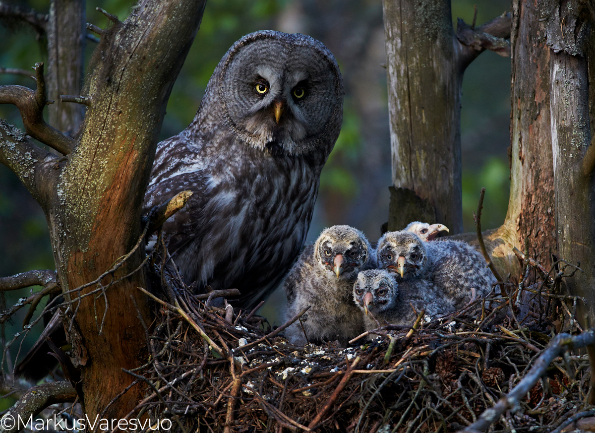 Aperture F-number f/5.6 Exposure Time: 1/250 ISO: 1600 Image information: Great Grey Owl at nest (Strix nebulosa, lapinpöllö) Vaala Finland June 2015 Time from camera: 2015:06:04 Copyright: Markus Varesvuo Pursilahdenranta 2B22 00980 Helsinki Finland +358405033831 markus.varesvuo@lintukuva.fi Camera: Canon EOS-1D X Focal Length: 560/1 | |