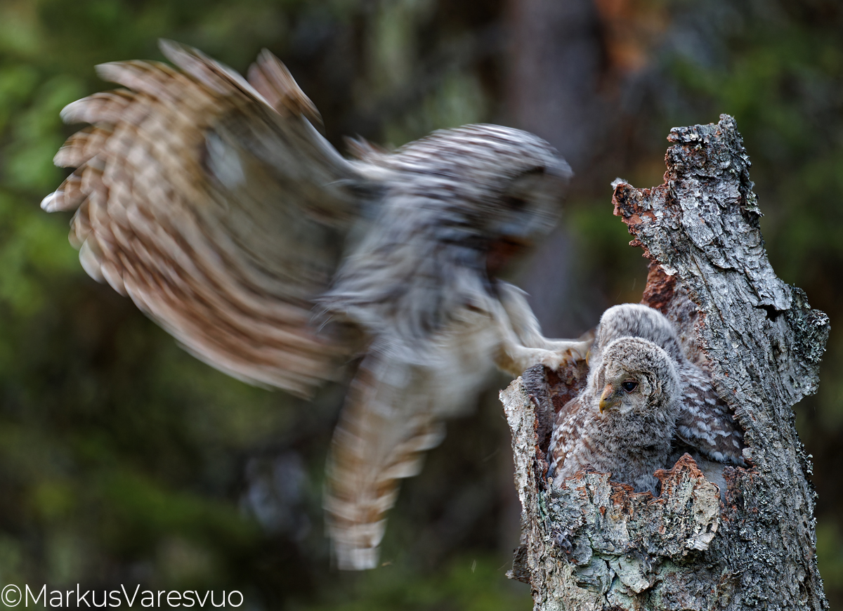 Aperture F-number f/4.0 Exposure Time: 1/50 ISO: 800 Image information: Ural Owl with chicks at nest (Strix uralensis) Kuusamo Finland June 2011 Time from camera: 2011:06:04 Copyright: Markus Varesvuo Pursilahdenranta 2B22 00980 Helsinki Finland +358405033831 markus.varesvuo@lintukuva.fi Camera: Canon EOS-1D Mark IV Focal Length: 500/1 | |
