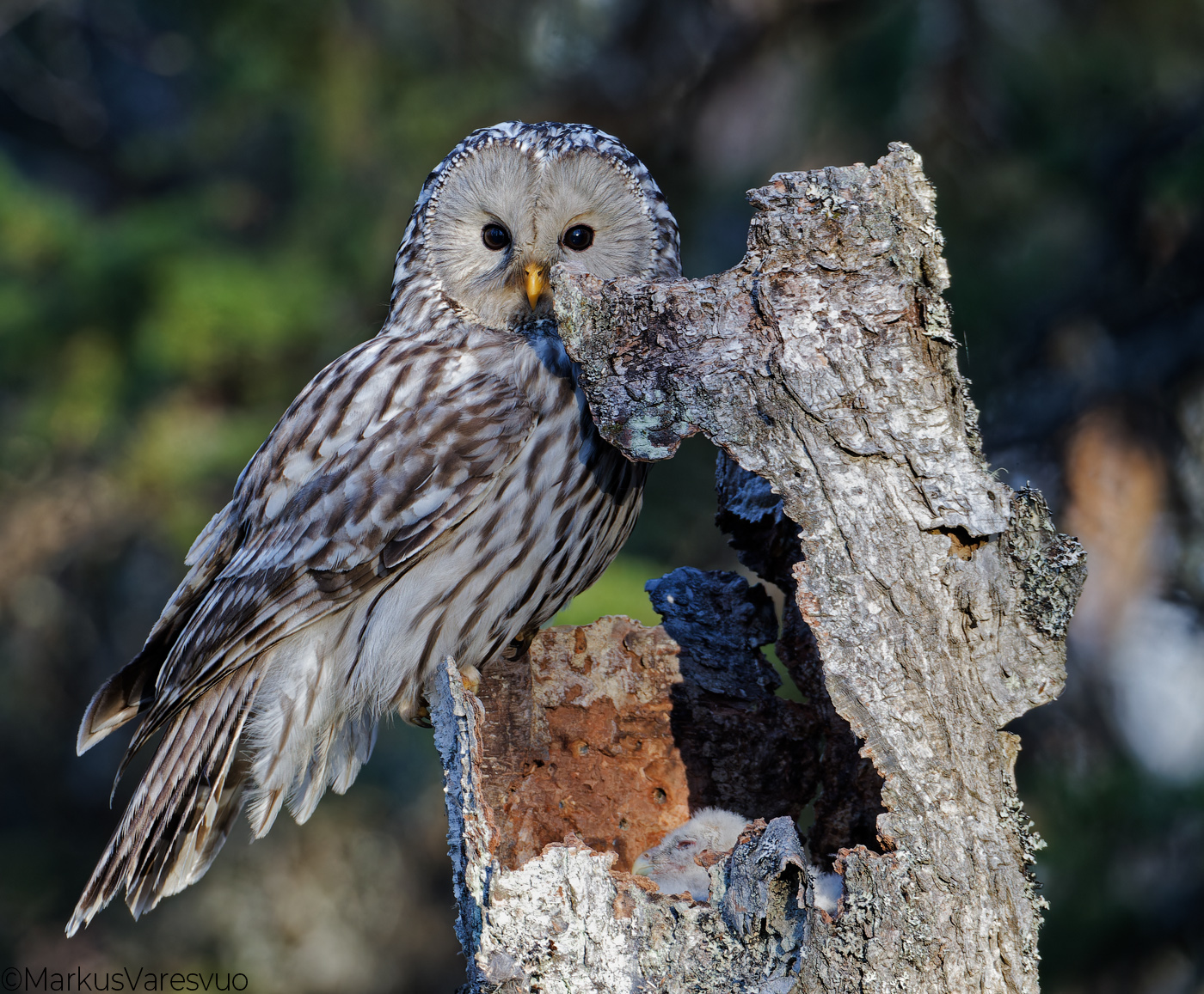 Aperture F-number f/7.1 Exposure Time: 1/200 ISO: 800 Image information: Ural Owl at nest (Strix uralensis)Kuusamo Finland May 2011 Time from camera: 2011:05:22 Copyright: Markus Varesvuo Pursilahdenranta 2B22 00980 Helsinki Finland +358405033831 markus.varesvuo@lintukuva.fi Camera: Canon EOS-1D Mark IV Focal Length: 800/1 | |