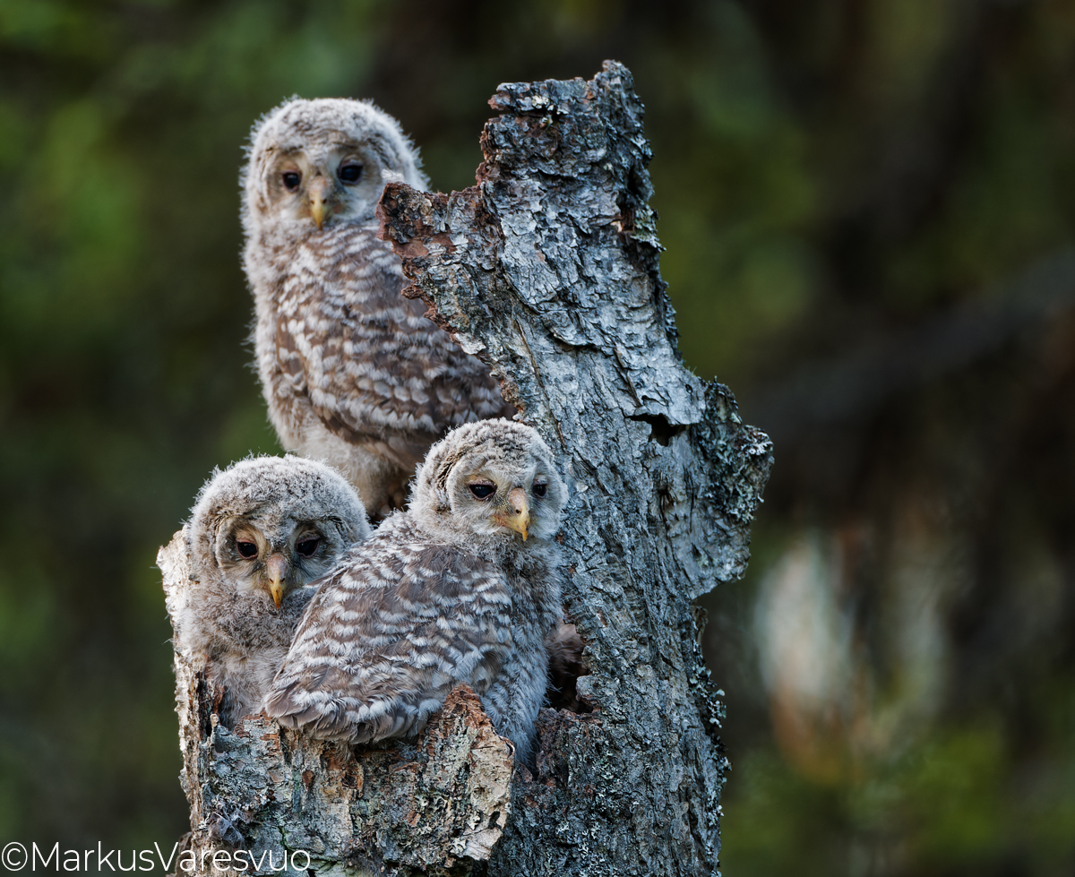 Aperture F-number f/5.6 Exposure Time: 1/40 ISO: 800 Image information: Ural Owl chicks (Strix uralensis) Kuusamo Finland June 2011 Time from camera: 2011:06:04 Copyright: Markus Varesvuo Pursilahdenranta 2B22 00980 Helsinki Finland +358405033831 markus.varesvuo@lintukuva.fi Camera: Canon EOS-1Ds Mark III Focal Length: 800/1 | |