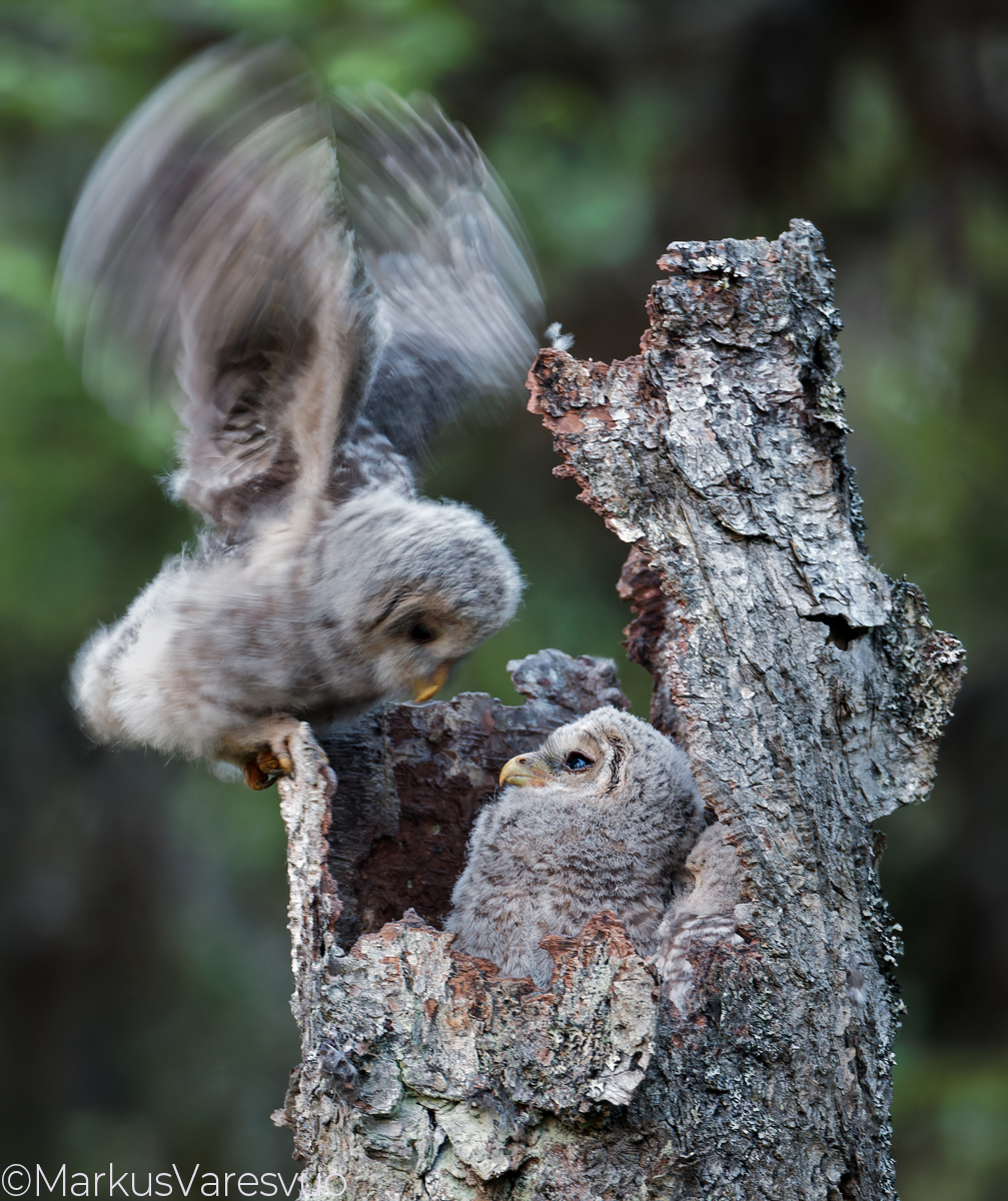 Aperture F-number f/5.6 Exposure Time: 1/15 ISO: 800 Image information: Ural Owl chicks (Strix uralensis) Kuusamo Finland June 2011.