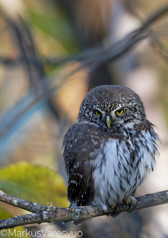 Aperture F-number f/8.0 Exposure Time: 1/200 ISO: 800 Image information: Pygmy Owl (Glaucidium passerinum) Hanko Finland October 2009. Time from camera: 2009:10:15 Copyright: Markus Varesvuo Pursilahdenranta 2B22 00980 Helsinki Finland +358405033831 markus.varesvuo@lintukuva.fi Camera: Canon EOS-1Ds Mark III Focal Length: 800/1 | |