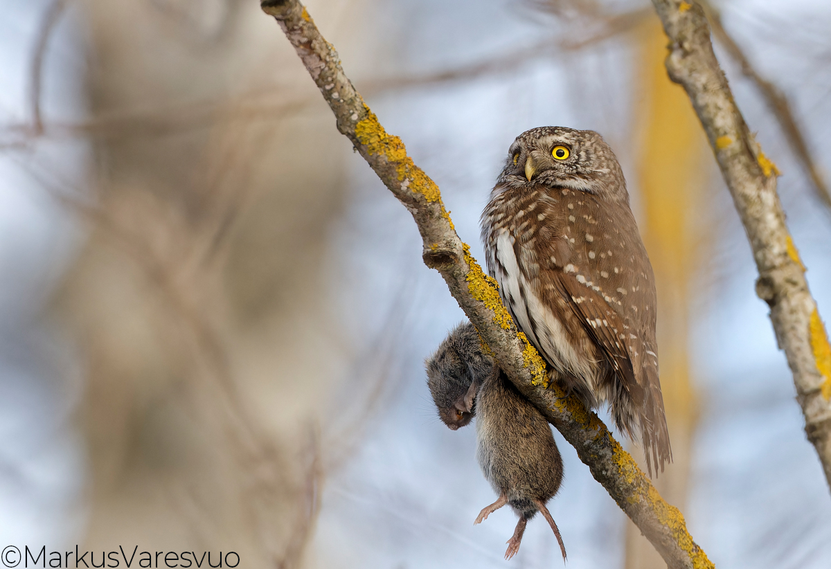 Aperture F-number f/6.3 Exposure Time: 1/5000 ISO: 8000 Image information: Pygmy Owl (Glaucidium passerinum) Helsinki Finland March 2024. Has just caught a Short-tailed field vole (Microtus agrestis). Time from camera: 2024:03:10 Copyright: Markus Varesvuo Pursilahdenranta 2B22 00980 Helsinki Finland +358405033831 markus.varesvuo@lintukuva.fi Camera: Canon EOS R3 Focal Length: 600/1 | |