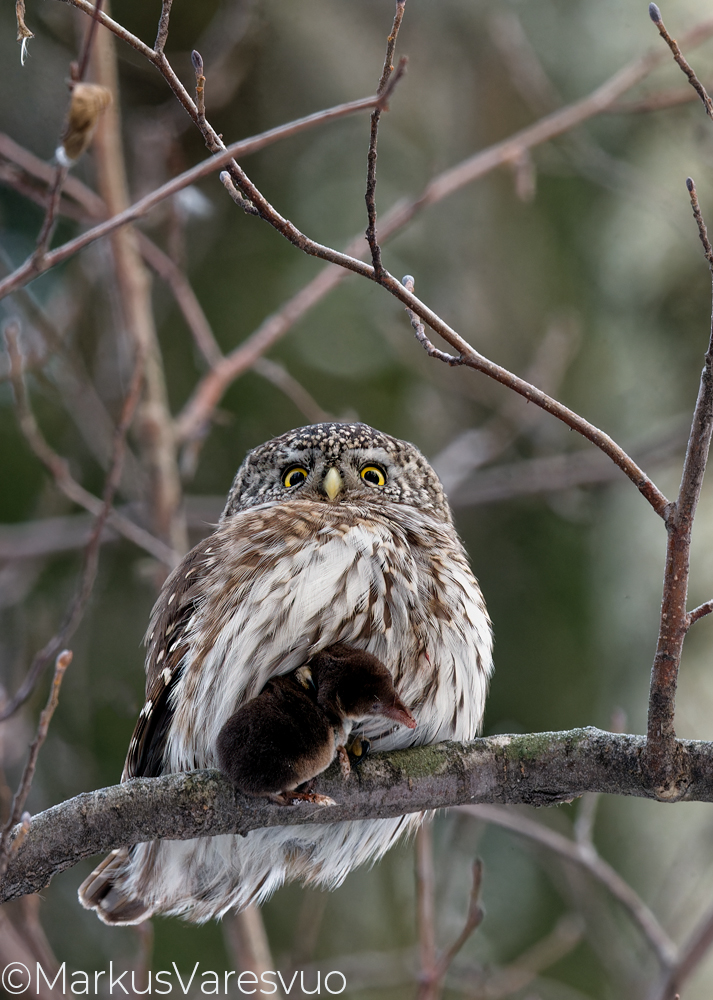 Aperture F-number f/16.0 Exposure Time: 1/40 ISO: 1600 Image information: Pygmy Owl (Glaucidium passerinum) Helsinki Finland Janruary 2013 . a Shrew as aprey. Time from camera: 2013:01:22 Copyright: Markus Varesvuo Pursilahdenranta 2B22 00980 Helsinki Finland +358405033831 markus.varesvuo@lintukuva.fi Camera: Canon EOS-1D X Focal Length: 700/1 | |