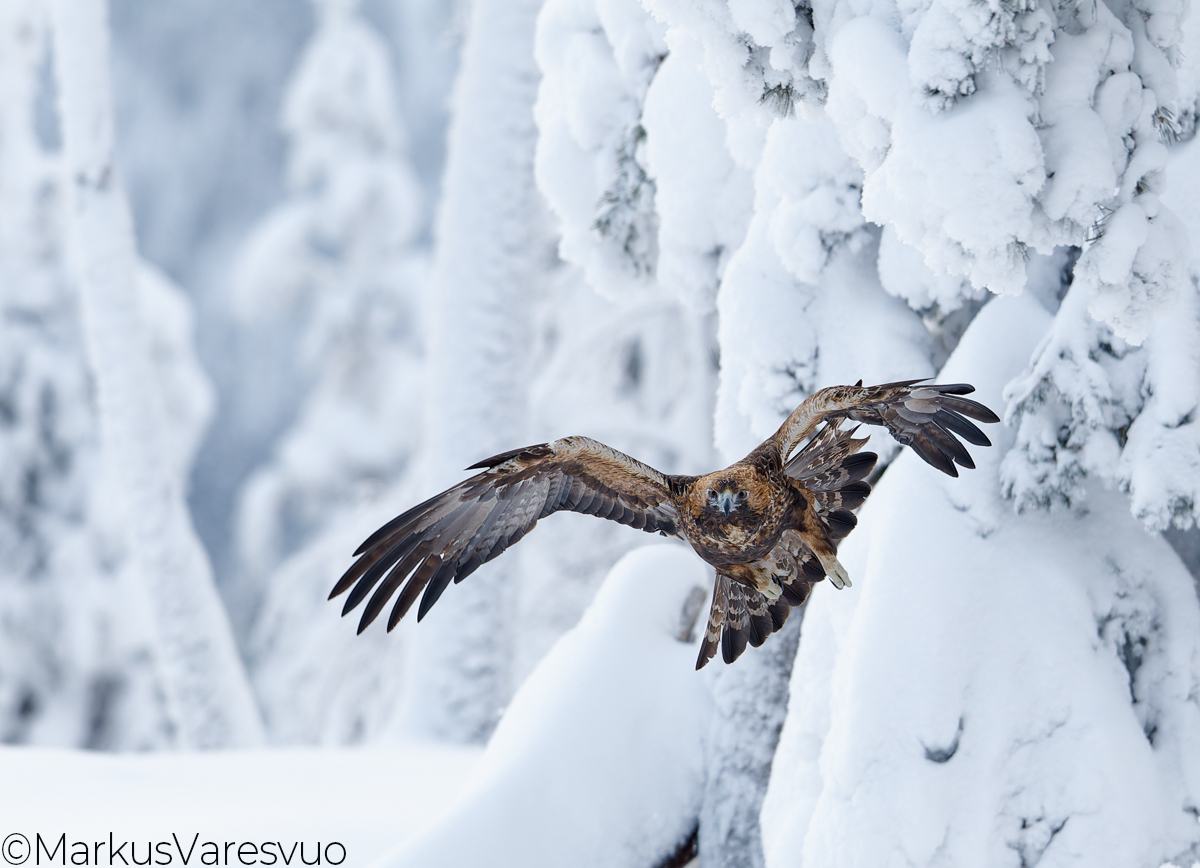 Aperture F-number f/4.0 Exposure Time: 1/2000 ISO: 1250 Image information: Golden Eagle (Aquila chrysaetos) Kuusamo February 2011 Time from camera: 2011:02:07 Copyright: Markus Varesvuo Pursilahdenranta 2B22 00980 Helsinki Finland +358405033831 markus.varesvuo@lintukuva.fi Camera: Canon EOS-1D Mark IV Focal Length: 300/1 | |