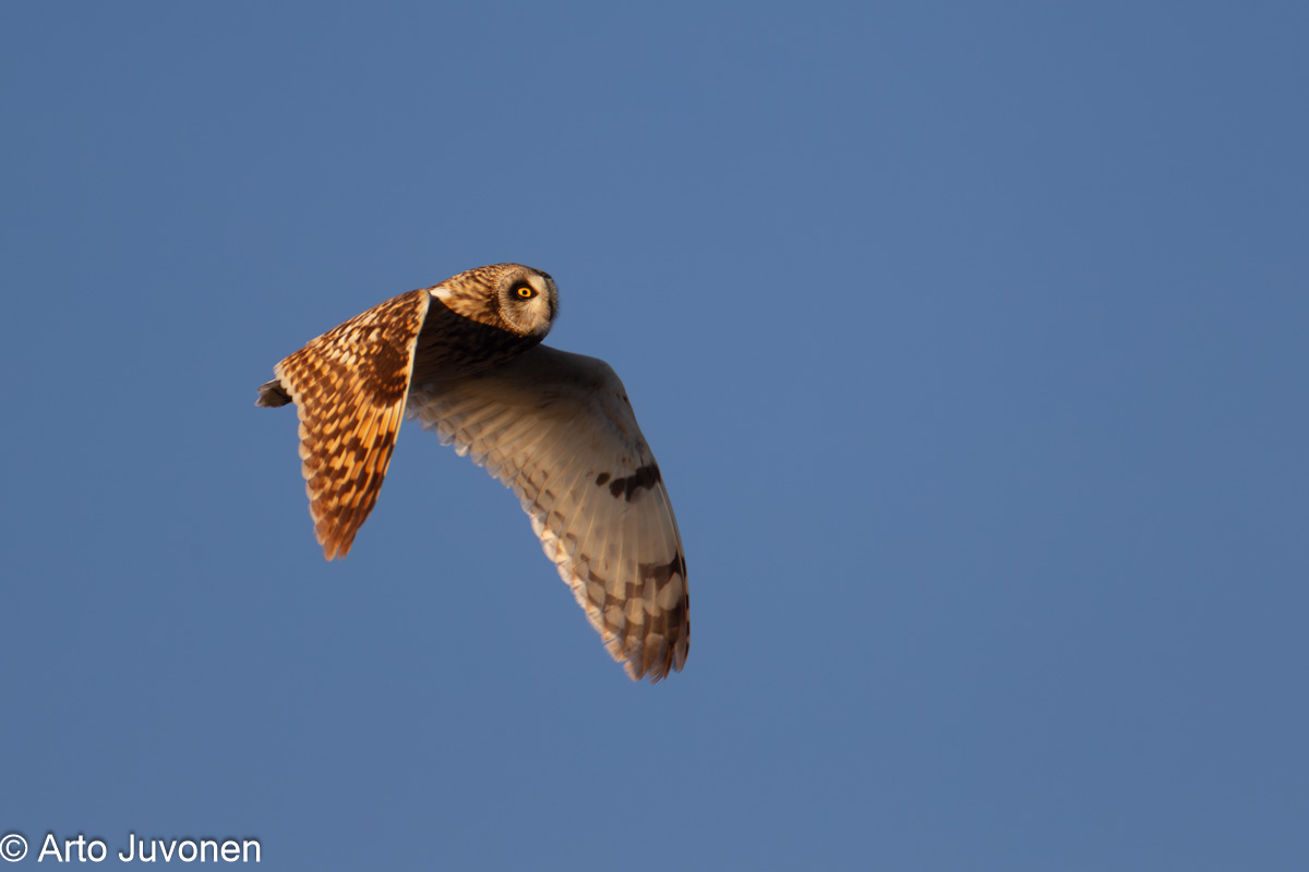Aperture F-number f/6.3 Exposure Time: 1/1250 ISO: 200 Image information: Asio flammeus; Short-eared owl; Suopöllö. Meren yllä muuttava. Migrating bird. Porvoo, Finland Time from camera: 2011:05:10 Copyright: Arto Juvonen Camera: Canon EOS-1D Mark IV Focal Length: 700/1 | |