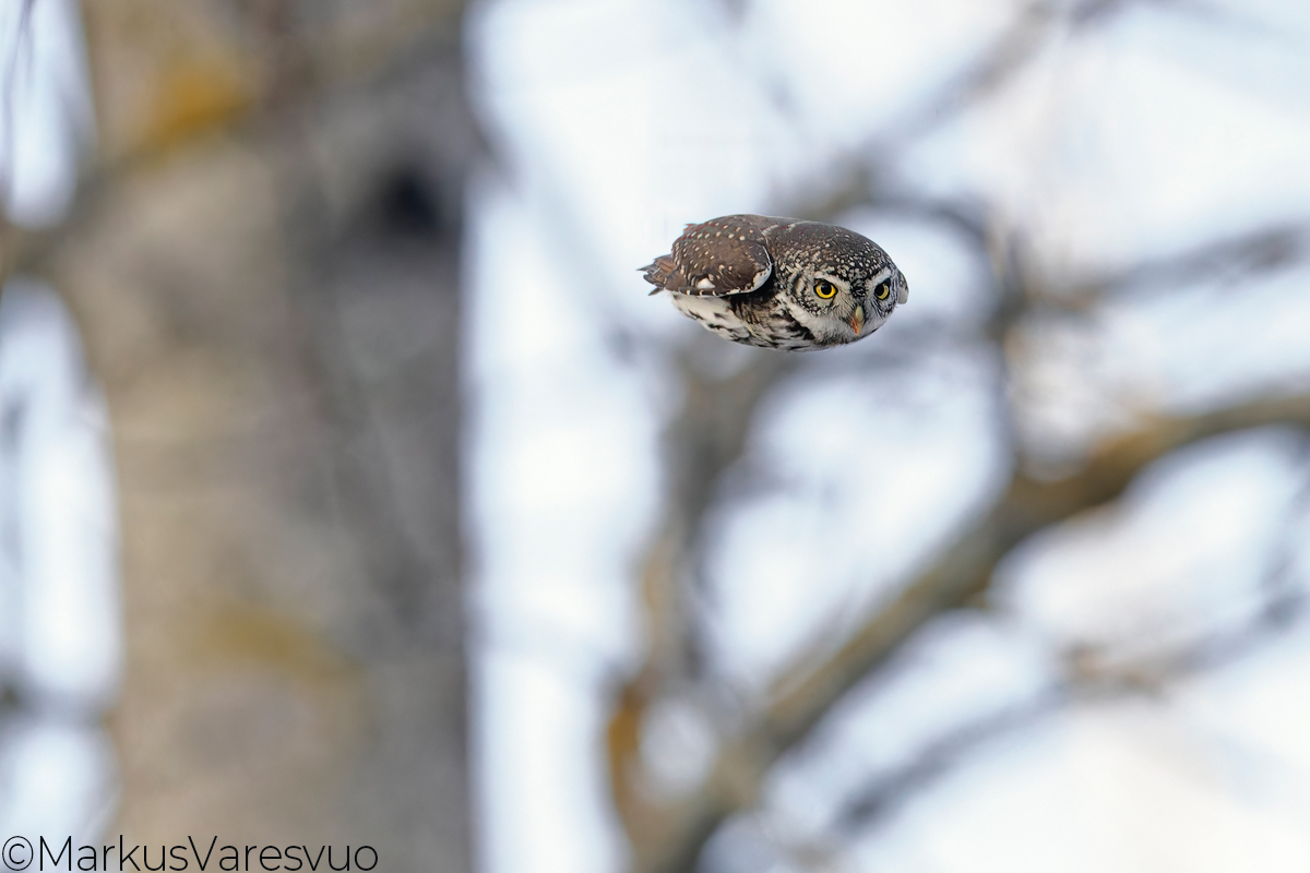 Aperture F-number f/5.0 Exposure Time: 1/5000 ISO: 16000 Image information: Pygmy Owl (Glaucidium passerinum) Helsinki Finland November 2023 Time from camera: 2023:11:25 Copyright: Markus Varesvuo Pursilahdenranta 2B22 00980 Helsinki Finland +358405033831 markus.varesvuo@lintukuva.fi Camera: Canon EOS R3 Focal Length: 600/1 | |