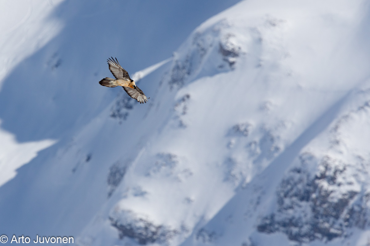 Aperture F-number f/9.0 Exposure Time: 1/2500 ISO: 400 Image information: Gybaetus barbatus, Beared Vulture, Lammergeier, partakorppikotka. Gemmipass, Switzerland Time from camera: 2016:03:12 Copyright: Arto Juvonen Camera: Canon EOS-1D X Focal Length: 840/1 | |