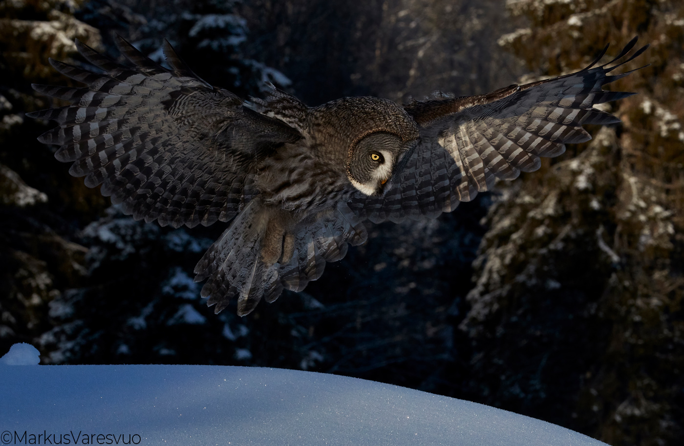 Aperture F-number f/16.0 Exposure Time: 1/2500 ISO: 2000 Image information: Great Grey Owl (Srix nebulosa) Kuusamo Finland February 2020 Time from camera: 2020:02:26 Copyright: Markus Varesvuo Leikosaarentie 31B49 00990 Helsinki Finland +358405033831 www.lintukuva.fi Camera: Canon EOS-1D X Mark II Focal Length: 185/1 | |