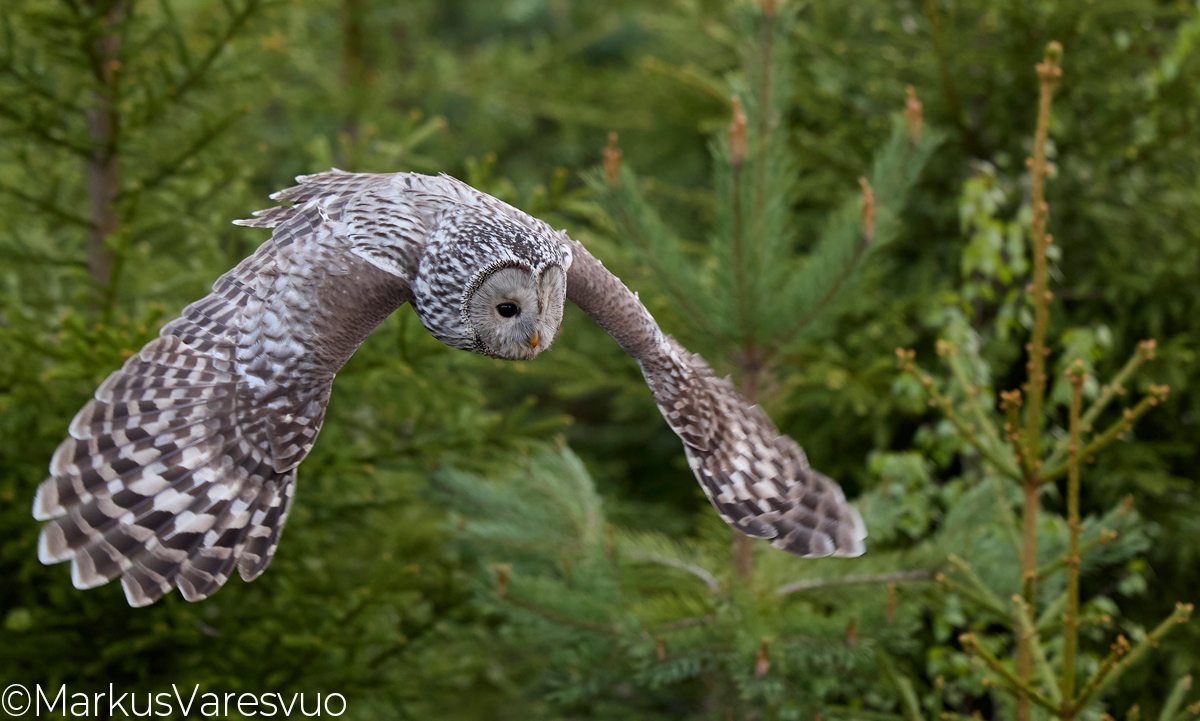 Aperture F-number f/2.8 Exposure Time: 1/800 ISO: 2500 Image information: Ural Owl (Strix uralensis) June 2022 Mainua Finland Time from camera: 2022:06:03 Copyright: Markus Varesvuo Leikosaarentie 31B49 00990 Helsinki Finland+358405033831 markus.varesvuo@lintukuva.fi Camera: Canon EOS R3 Focal Length: 100/1 | |