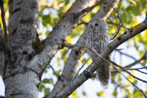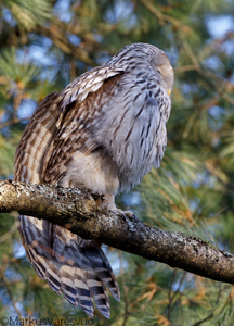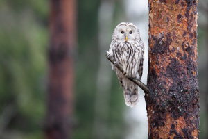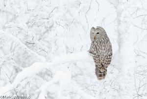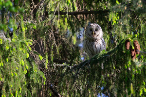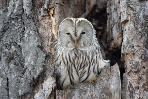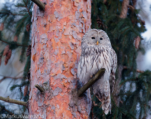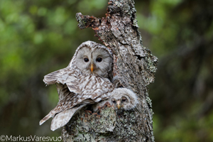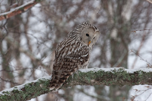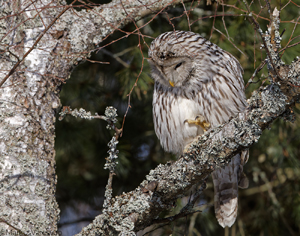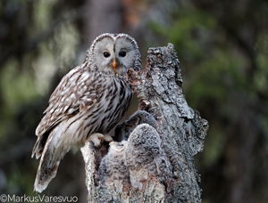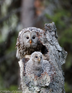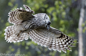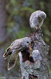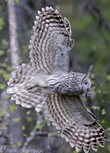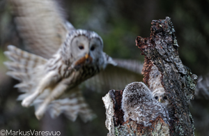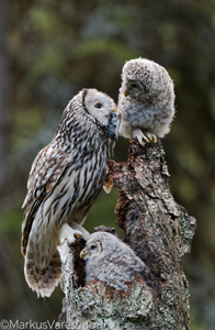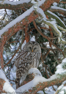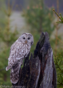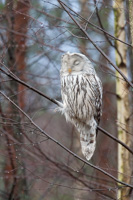 Strix uralensis, (IN)Ural Owl, (FI) viirupöllö, (DE) Habichtskauz, (SV) slaguggla, (FR) Chouette de lOural, (ES) Cárabo Uralense, (CA) Gamarús dels Urals, (IT) Allocco degli Urali, (NL) Oeraluil, (DA) Slagugle, (NO) Slagugle, (PT) puszczyk uralski