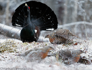 Tetrao urogallus, (IN)Western Capercaillie, (EN) , (US), (FI) metso, (DE) Auerhuhn, (SV) tjäder, (FR) Grand Tétras, (ES) Urogallo Común, (CA) Gall fer comú, (IT) Gallo cedrone, (NL) Auerhoen, (DA) -, (NO) no, (PT) głuszec