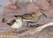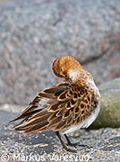 Calidris minuta, (IN)Little Stint, (EN) , (US), (FI) pikkusirri, (DE) Zwergstrandläufer, (SV) småsnäppa, (FR) Bécasseau minute, (ES) Correlimos Menudo, (CA) -, (IT) Gambecchio comune, (NL) Kleine Strandloper, (DA) -, (NO) no, (PT) biegus malutki