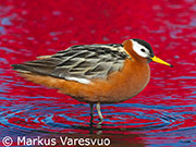 Phalaropus fulicaria, (IN)Red Phalarope, (EN) , (US), (FI) isovesipääsky, (DE) Thorshühnchen, (SV) brednäbbad simsnäppa, (FR) Phalarope à bec large, (ES) Falaropo Picogrueso, (CA) -, (IT) Falaropo beccolargo, (NL) Rosse Franjepoot, (DA) -, (NO) no, (PT) płatkonóg płaskodzio