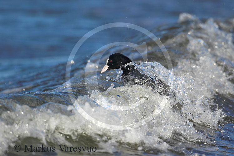 Viikon kuva Nokikana(Fulica Atra) Photo of the week is Coot Latvia 8.4.2004 Canon 1D+500mm(f2.8), 1/1600sec. f5.0, 200 asa Kuluneella viikolla en ehtinyt käytännössä maastoon ollenkaan, joten viikon kuva on tällä kertaa edellisen viikon satoa Latvian retkeltä. Viikon kuvassa nokikana surffailee Riianlahden aalloilla.