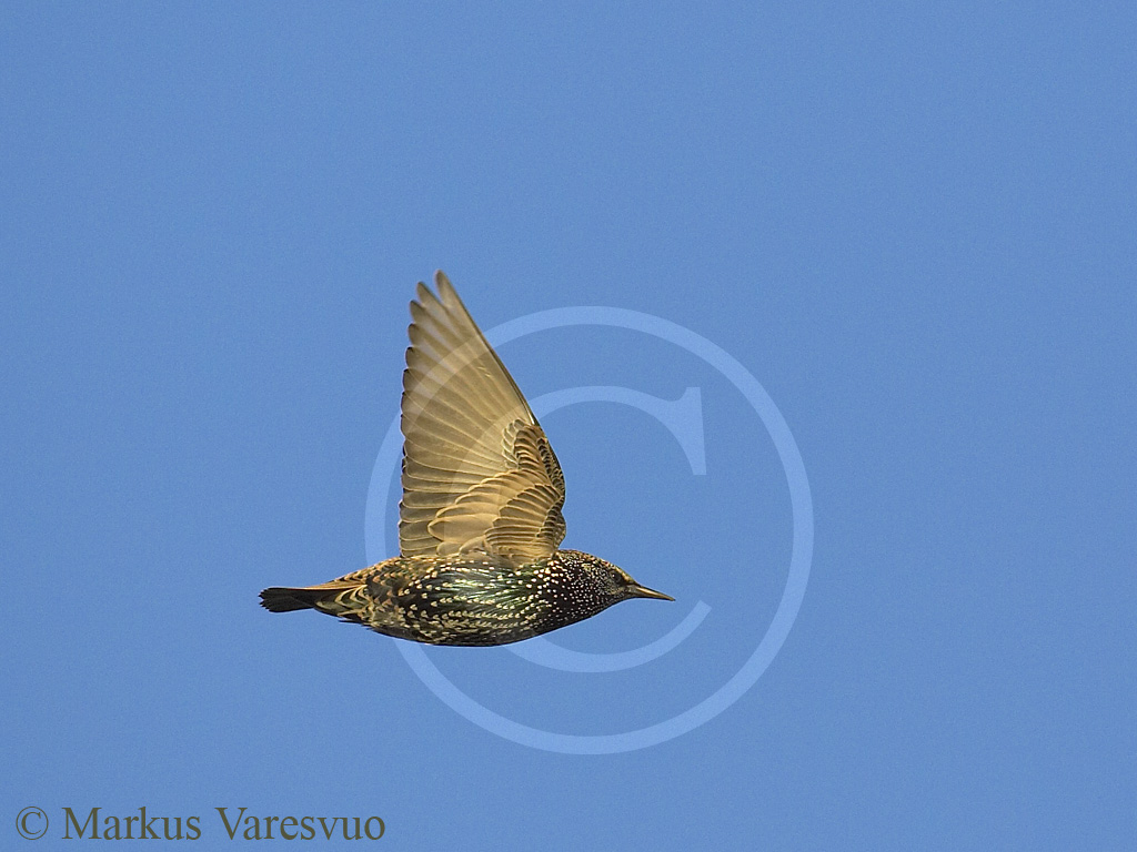 In this week´s photo flies a Starling in winter plumage.