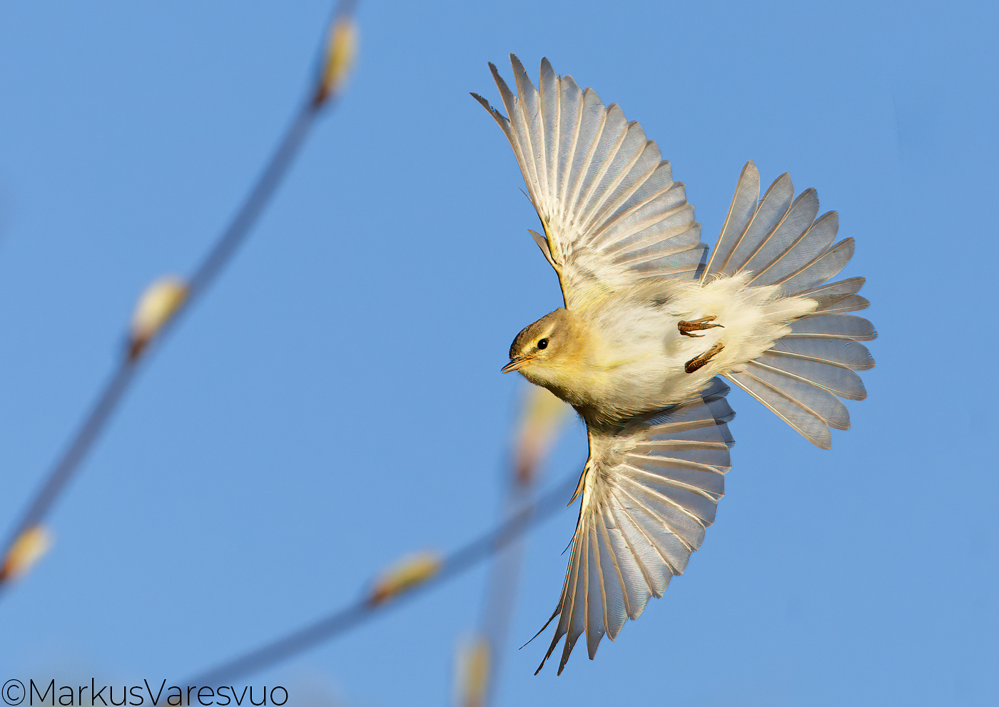A Wilow Warbler (Phylloscopus trochilus) in flight from this morning.