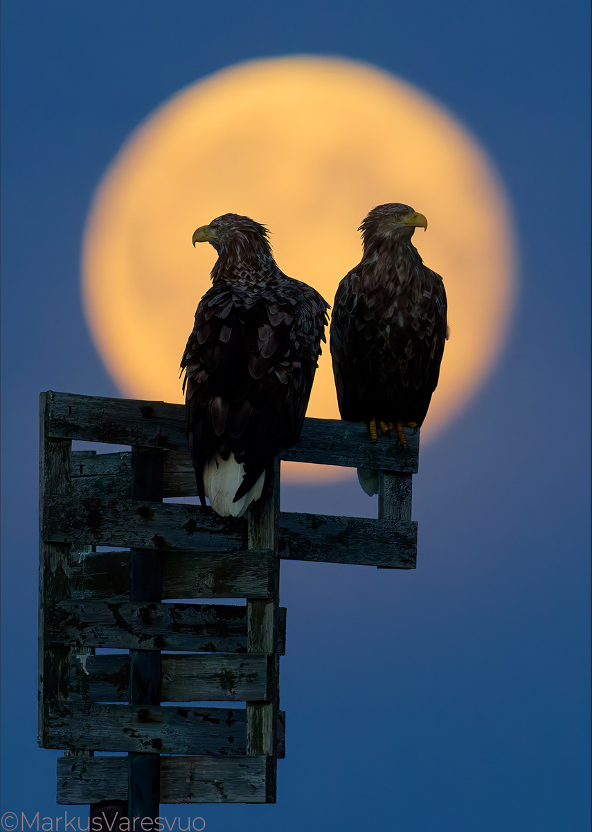 White-tailed Eagles (Haliaeetus albicilla) and the full moon. Thanks to Wenche and Ole Martin Dahle+ Norway Nature.