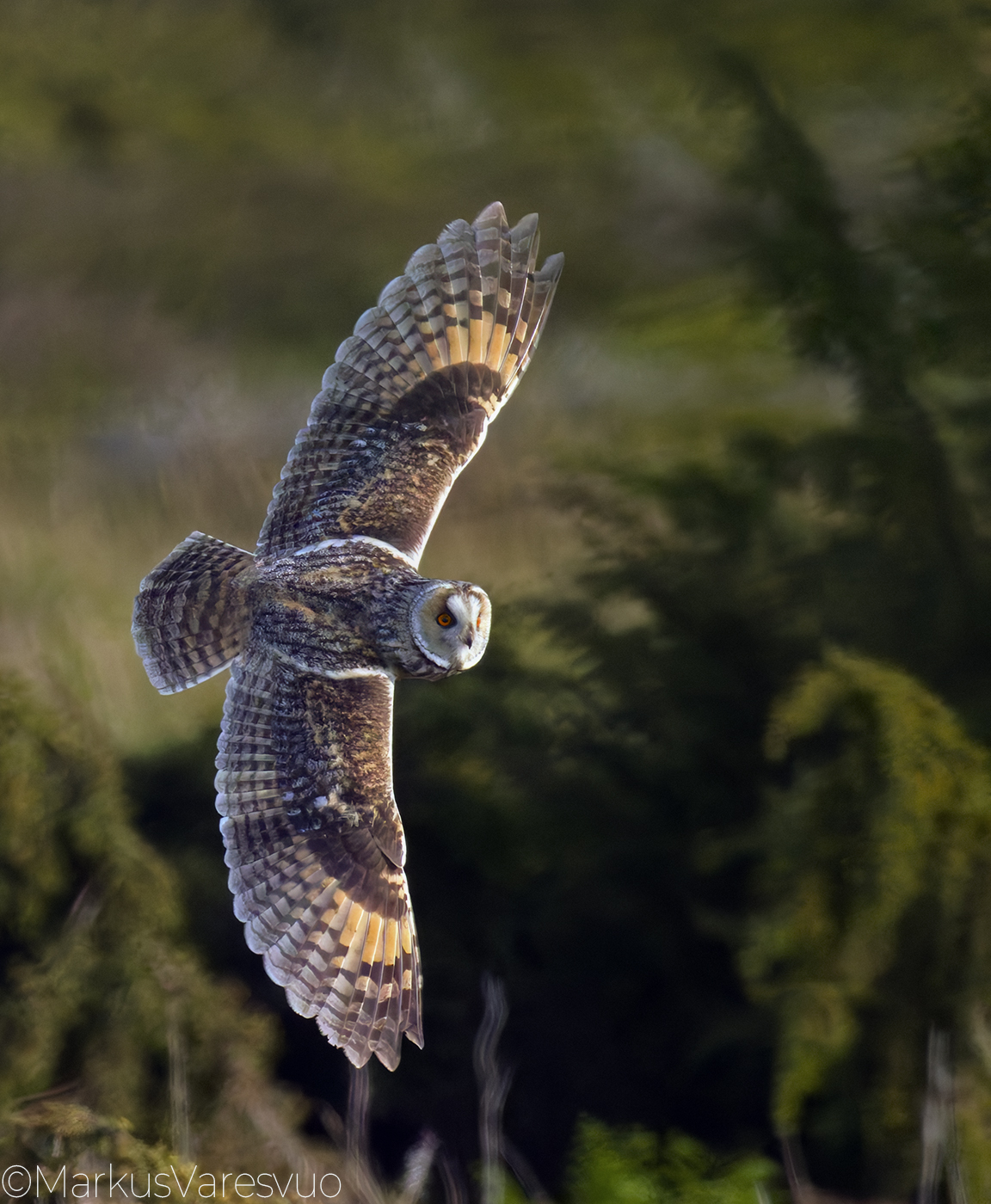 8 June 2025 Parainen Utö Finland. Sarvipöllö saattaa saalistaa myös päivänvalolla, vaikka on pääosin yöaktiivinen. Canon R5 mkII+ RF600mm + 1.4X, 1/6400s, F8.0, ISO5000.