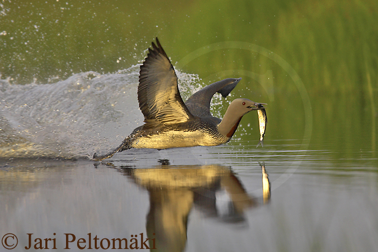 | Viikon kuvassa on kaakkuri Photo of the week is Red-throated Diver Canon 1D Mark II + 300 mm f2.8 IS USM + 1,4 extender, 1/1000 sec f/4.0 (ISO 400) Kuluneella viikolla vietin piilokojussa arviolta 50 tuntia! Kovaa hommaa, mutta hyvällä tuurilla kojusta käsin voi saada oheisen kaltaisia vauhdikkaita kuvia. Viikonkuvassa Oulujärvellä kalassa ollut kaakkuriemo kurvaa suolammelle, jossa sen jälkikasvu on varttumassa... Kiitos Eero Kemilälle yhteistyöstä!