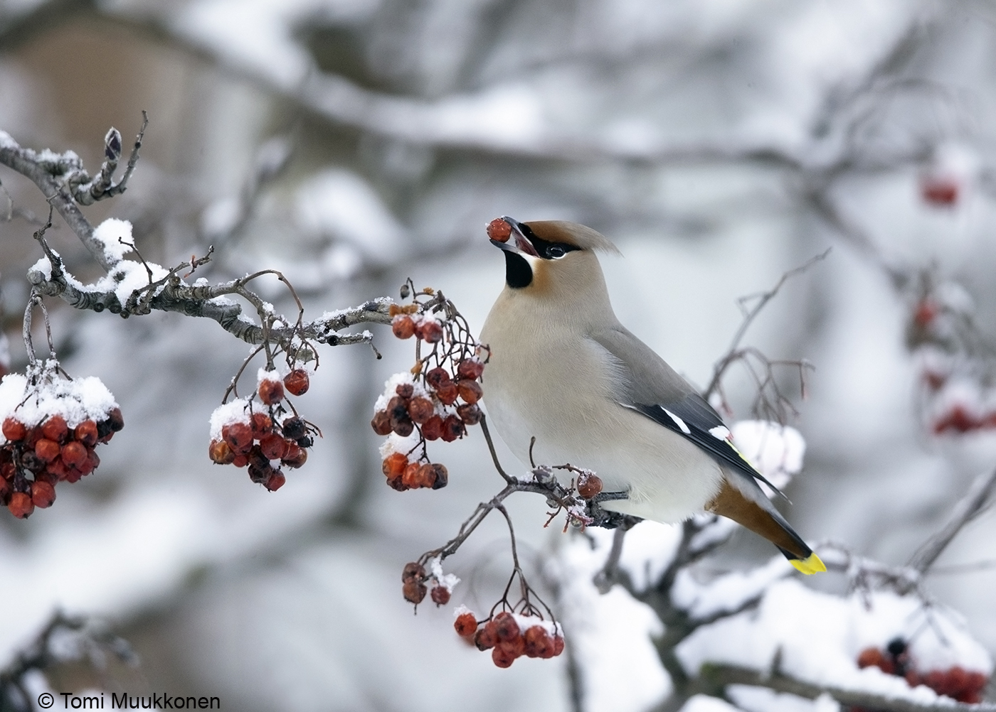 Canon EOS-1D X Mark II + EF600mm f/4L IS II USM +1.4x III, 1/640 sec, f 5,6, ISO 1600 You can see all pictures of the week if you push the arrow below. Contact muukkonentomi at gmail.com Takki tyhjenee koneen ääressä joka ilta. Yhtä taistelua näiden loppuun saakka vietyjen kuvankäsittelyohjelmien kanssa. Onhan se hienoa, kun kuvalle voi tehdä kaikenlaista, mutta kun minä mielestäni osasin jo. Miksi vanhan miehen pitää mennä koulunpenkille aina uudestaan ja uudestaan. Välillä käy mielessä kuvata pelkkiä jpg-kuvia, mutta en minä vielä luovuta. Koneen hajottua nyt tulee aivan liikaa opeteltavaa. Ei oikein huvita tämä kuvien säätäminen, vaikka kuvausintoa on. Tilhi Bombycilla garrulus Helsinki 6.1.2022 Kuulin kaverilta, että oli viettänyt kauniin talvipäivän siellä ja täällä saamatta yhtään kuvaa. Itselläni oli ollut hyvä päivä, kuvia neljästä lajista. Seuraava päivä olikin sitten pelkkää nollaa, vaikka lehtopöllön näinkin. Pääkaupunkiseudulla on vielä niin tolkuttomasti marjoja puissa, että linnut ovat missä sattuu. Monissa kaupunginosissa on vain mustarastaita. Mutta uskoa täytyy, että taviokuurnia tulee vielä meidänkin iloksi. Yhteydenotot: muukkonentomi at gmail.com, Puhelin 0400 968855 |