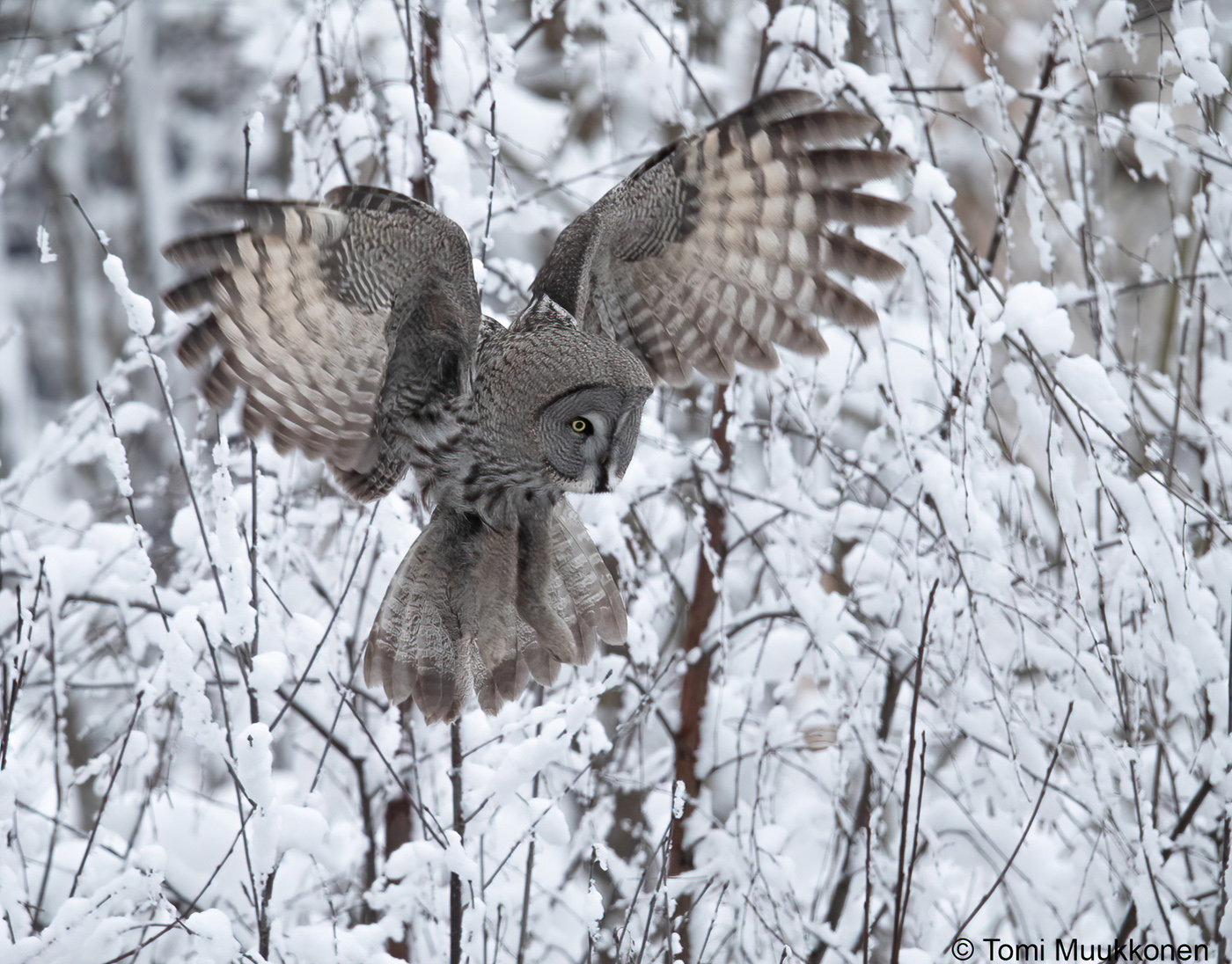Canon EOS-1D X Mark II + EF600mm f/4L IS II USM +1.4x III, 1/640 sec, f 5,6, ISO 3200 You can see all pictures of the week if you push the arrow below. Contact muukkonentomi at gmail.com Tappaja saapui kaupunkiin Strix nebulosa Helsinki 23.2.2022 Itä-Helsingin kerrostaloalueella saalistaa lapinpöllö, yksi lintumaailman upeimmista ilmestyksistä. Se nukkui päivän erään talon pihassa, minkä voi tulkita niin, ettei sillä ollut nälkä. Auringonlaskun aikaan se alkoi saalistaa. Ensimmäisellä lennolla se ei iskenyt hankeen vaan pyörähti takaisin tähystyspaikalle. Onneksi paikalla oli suhteellisen hiljaista, sillä pöllö saalistaa jyrsijöitä hangen alta kuulon avulla. Moni on ollut syystäkin huolissaan pöllöstä, sillä vaarana ovat innokkaat kuvaajat, jotka ajavat linnun helposti pois hyvältä saalistuspaikalta. Onneksi löytyy sellaisia henkilöitä, jotka valistavat muita, ja paras valvonta onkin silloin, kun paikalla on useita lintuharrastajia. Tätä lapinpöllöä tarkkailtiin kadulta, jolla siis kulkee ihmisiä matkalla kotiinsa, tai on ulkoilemassa. Koiria pöllöt pelkäävät, eivät kameroita. Niinpä voimme kenties nukkua rauhassa, ehkä pöllö saa elää? Yhteydenotot: muukkonentomi at gmail.com, Puhelin 0400 968855
