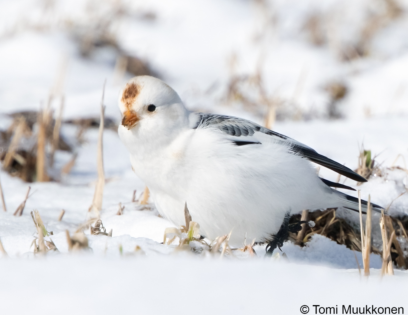 Canon EOS-1D X Mark II + EF400mm f/4 DO IS II USM +1.4x III, 1/3200 sec, f 11, ISO 1600 You can see all pictures of the week if you push the arrow below. Contact muukkonentomi at gmail.com En ole maitovalas vaan pulmunen Plectrophenax nivalis Helsinki Viikki Yhteydenotot: muukkonentomi at gmail.com, Puhelin 0400 968855