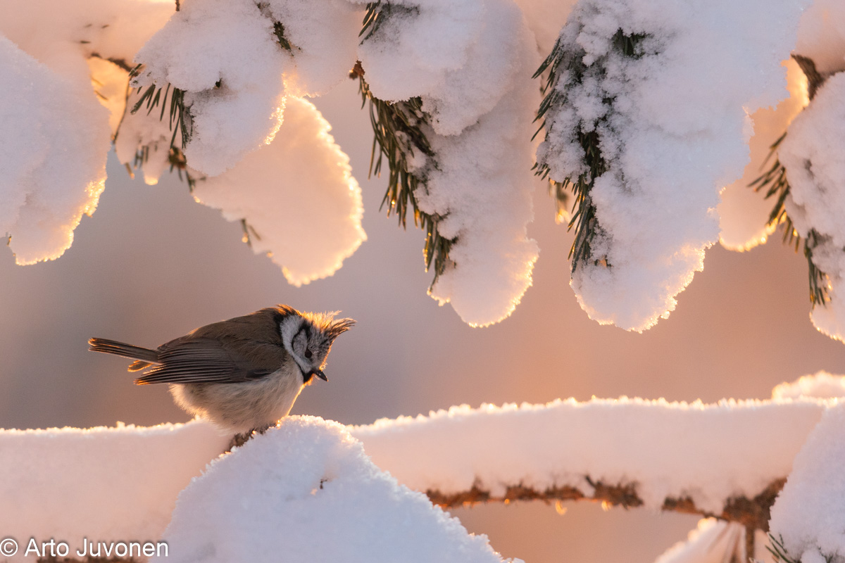 Töyhtötiainen Creasted Tit Parus cristatus Lapinjärvi 7.1.2024 Canon EOS R6, 600 mm, f/4, ISO-1000, 1/1250 sec, Tripod used |