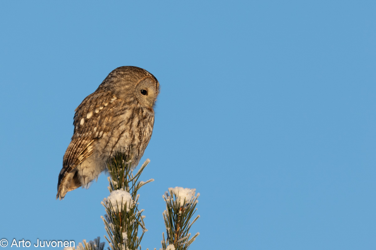 Lehtopöllö Tawny Owls Strix aluco Lapinjärvi 7.1.2024 Canon EOS R6, 600 mm, f/4, ISO-160, 1/1000 sec, Hand held |