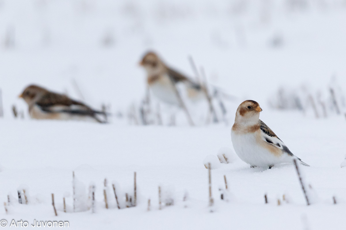 Snow buntings are rather rare birds at winter time here around. However during the current month I have had five observations. Today I had some luck getting close enough to get some pictures.