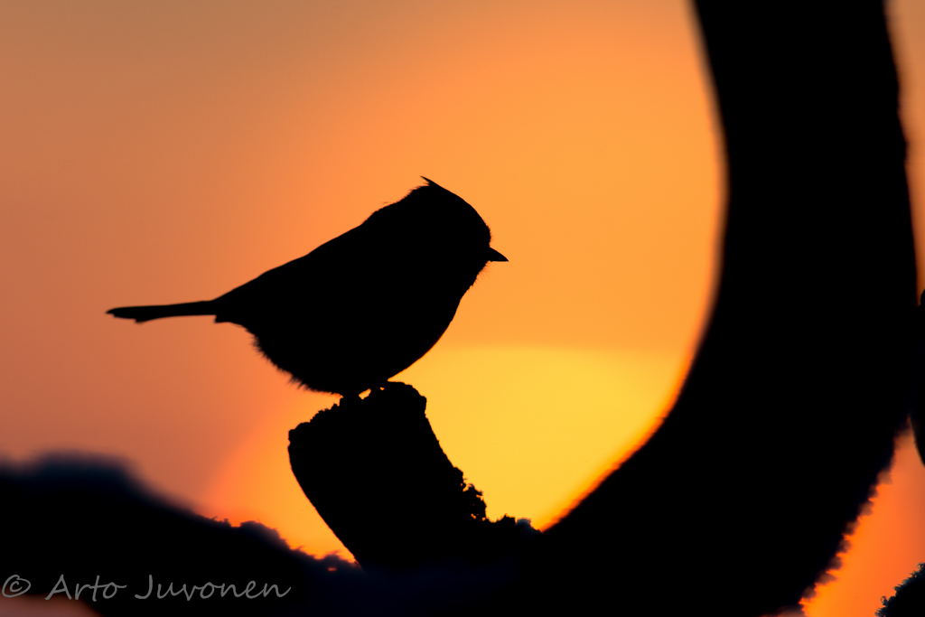 Tänään aamulla kävin metsäruokinnalla kuvaamassa auringonousun hetken. Aurinko nousi täysin kirkkaalle taivaalle. Tilanne kuvata suoraan vasten valokiekkoa oli ohi kahdessa minuutissa. Sitten pakaksinkin kuvaukamat ja painuin töihin.