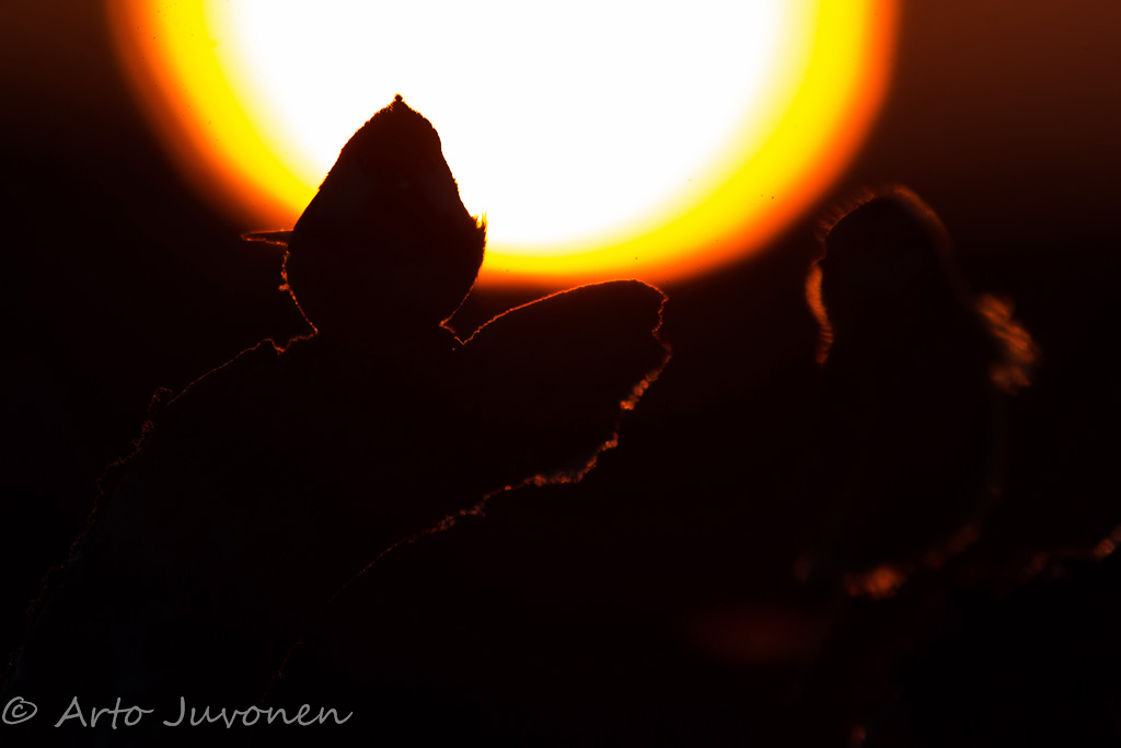 Aamulla kävin kuvaamassa auringonnousun metsäruokinnalla. Muutama riittävän erikoinen kuva sattui kortille, vaikkakin aurinko nousi taaskin aivan liian kirkkaana. Mutta palakoon sitten puhki, onhan se sentään aurinko. Uskallan kuin uskallankin kokeilla viikkarina aamun kuvista erikoisinta.