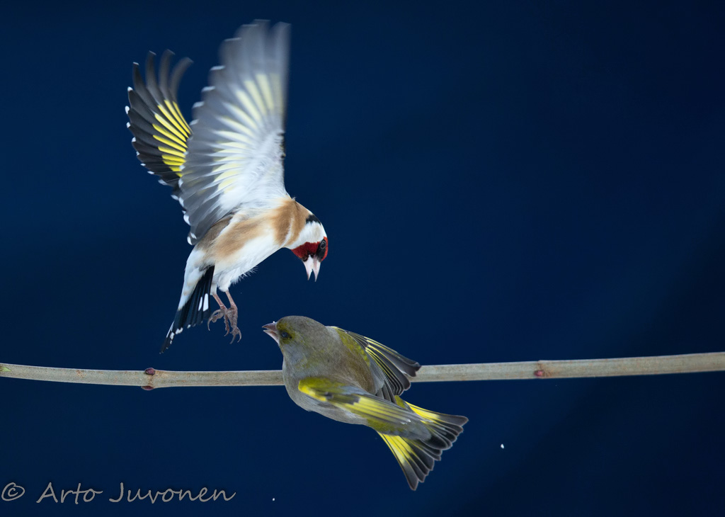Cold, strong wind, but I spent all the day outside in our garden taking pictures of birds visiting at the feeding place. Main targets were so colorful European Goldfinches
