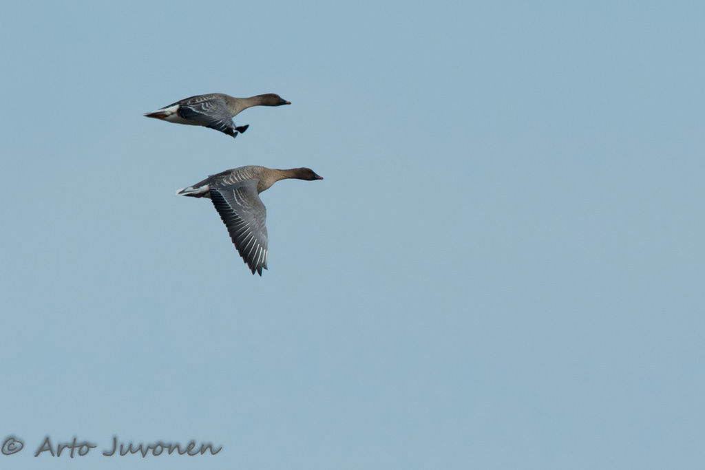 Alla lisäkuvassa näkee, kuinka vaikeaa on erottaa lyhytnokkahanhi tundrametsähanhesta,