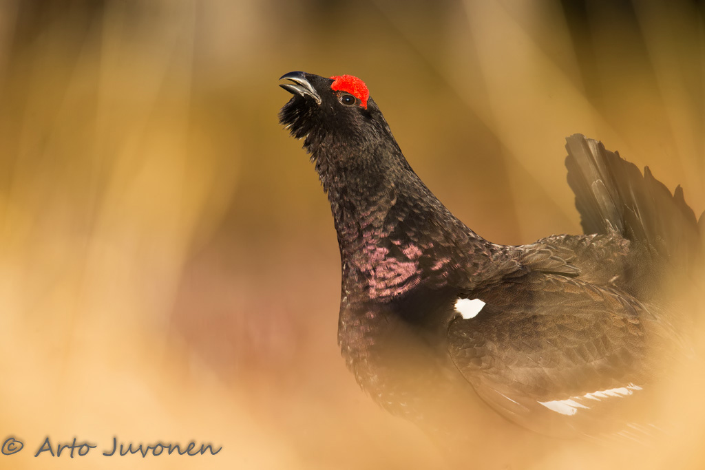 A male Capercaillie x Black Grouse hybrid at a lek of Black Grouses. Strange voice of a hybrid you can hear at recording made by Hannu Jännes