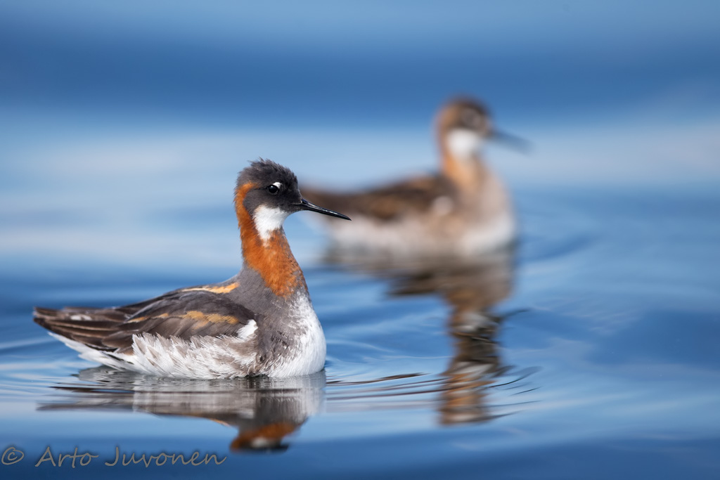 Red-necked Phalarope is one of few species that female is brighter colored and bigger than male.