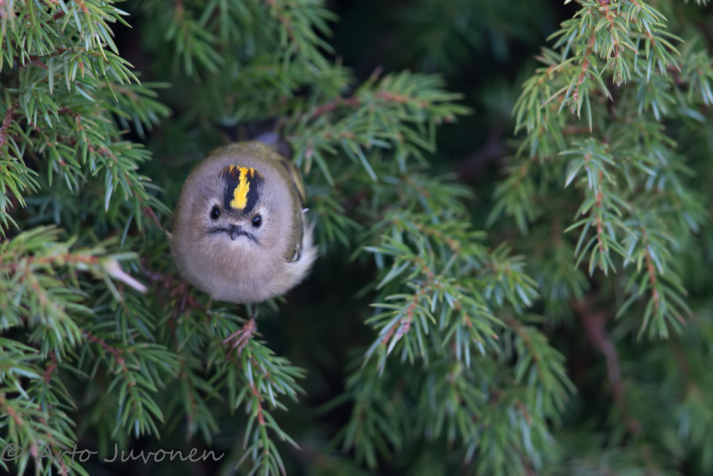 Hippiäinen GoldcrestRegulus regulus 6.9.2014 Loviisa, Finland Canon EOS 1D X, 600 mm * 1.4 tc, f/5.6, ISO-1600, 1/320 sec. With tripod |