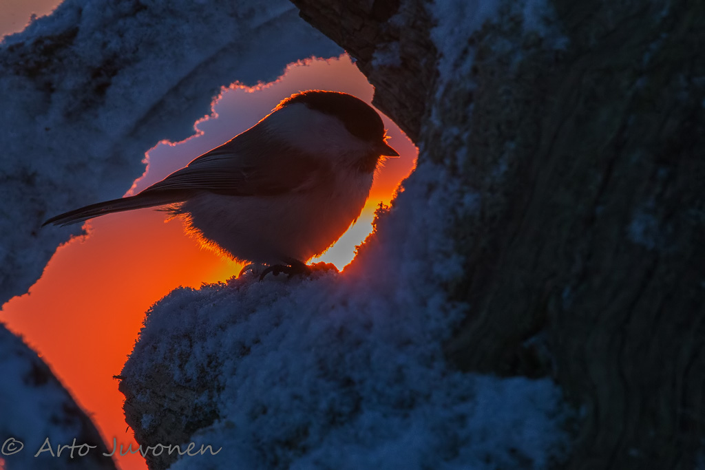 A Willow Tit with a rising sun behind in the picture of the week - picture taken at my forest feeding place.
